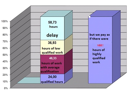 As you can observe from the diagram, the productivity is not at all a hurrah as compared to the salary. Let’s suppose that You employ a qualified specialist for a responsible position. During the interview, he solves complex tasks professionally (and his statement of service is not bad); the level of the salary will be set according to his best skills and his maximum qualification level, but it is very improbable that he will be loaded with highly qualified work for the whole month. Furthermore, the efficiency of the work will tend towards the one described in the diagram.